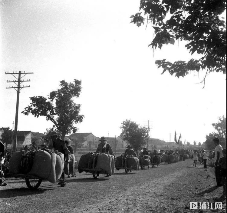 上世纪五十年代踊跃交公粮的手推车队(张文晖摄)