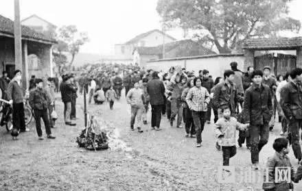 上世纪八十年代初,村民在“江南第一家”郑氏宗祠内看电视(张文晖摄)