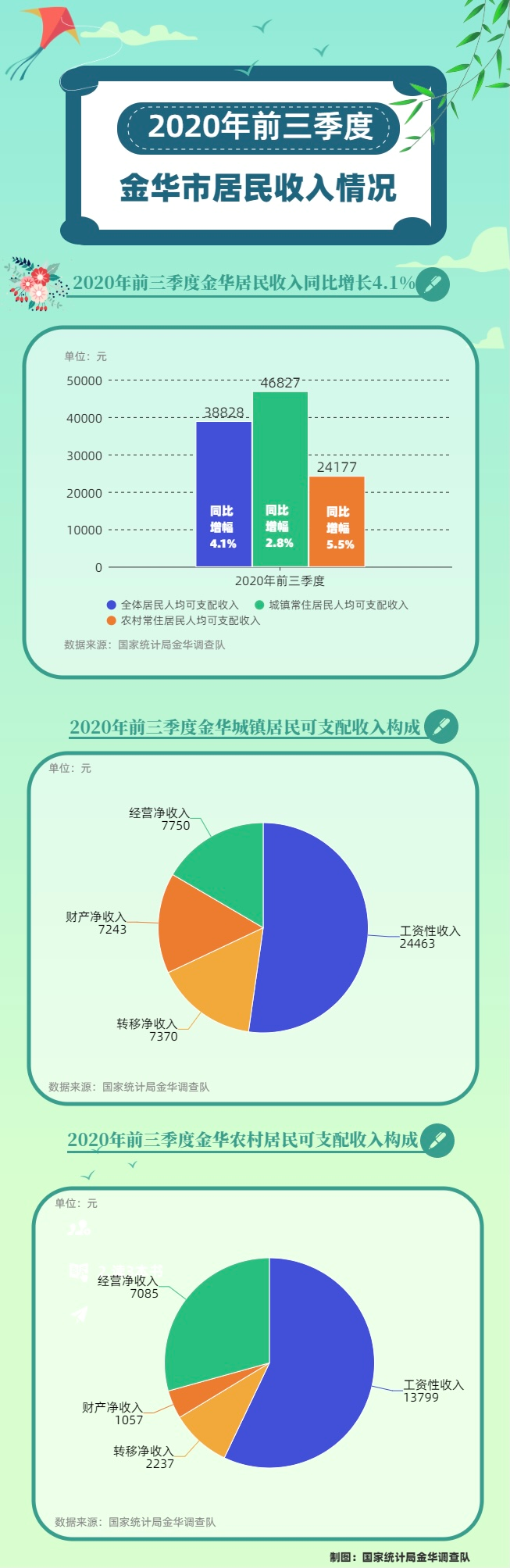 据金华调查队抽样调查显示,2020年前三季度金华市全体居民人均可支配收入38828元,同比增长4.1%,增速较上半年回升1.4个百分点。