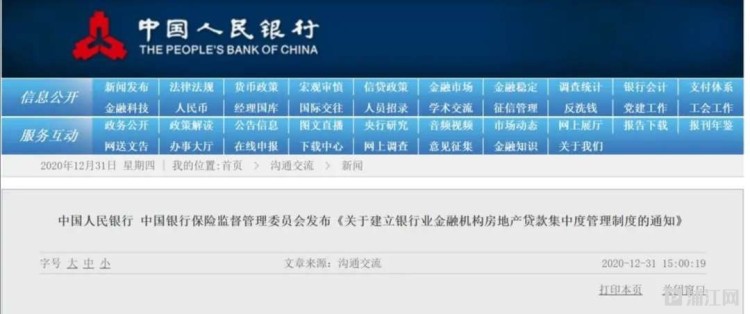 2020年的最后一天,央行、银保监会发布通知,划定银行房地产贷款集中度“红线”。