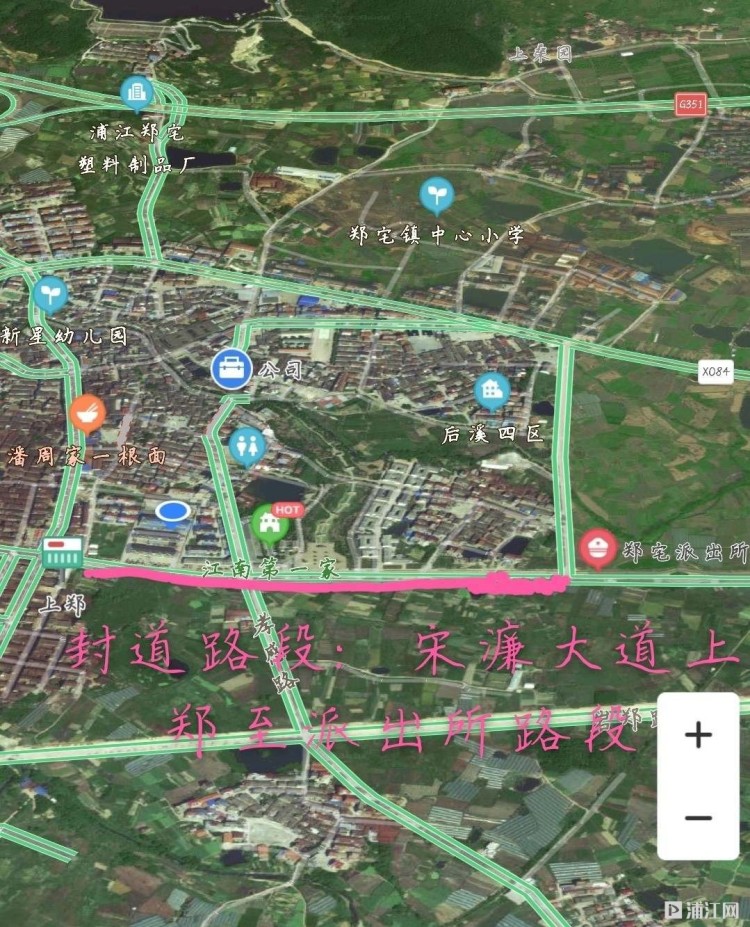 二、绕行线路:本工程主要涉及对宋濂大道的上郑德艺堡至郑宅派出所全路段(江南第一家牌坊群南面),附近居民或到江南第一家景区的游客,请从岩郑线或浦后路绕道通行,广大驾驶员注意行车安全。