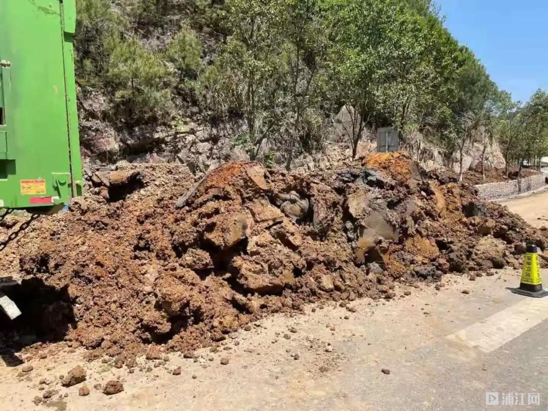 道路被倾倒的废土覆盖,路面泥泞不堪!浦江这运输单位罚款10000元