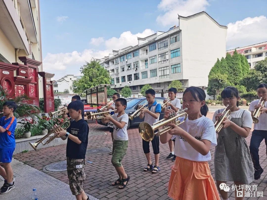 队员们经常练到肩膀酸痛得抬不起来,但是他们咬牙坚持,最终,辛勤和汗水换来了收获。杭坪中小鼓号队更是多次以助演队伍形式亮相杭坪镇传统摆祭活动和浦江县少代会开幕式。