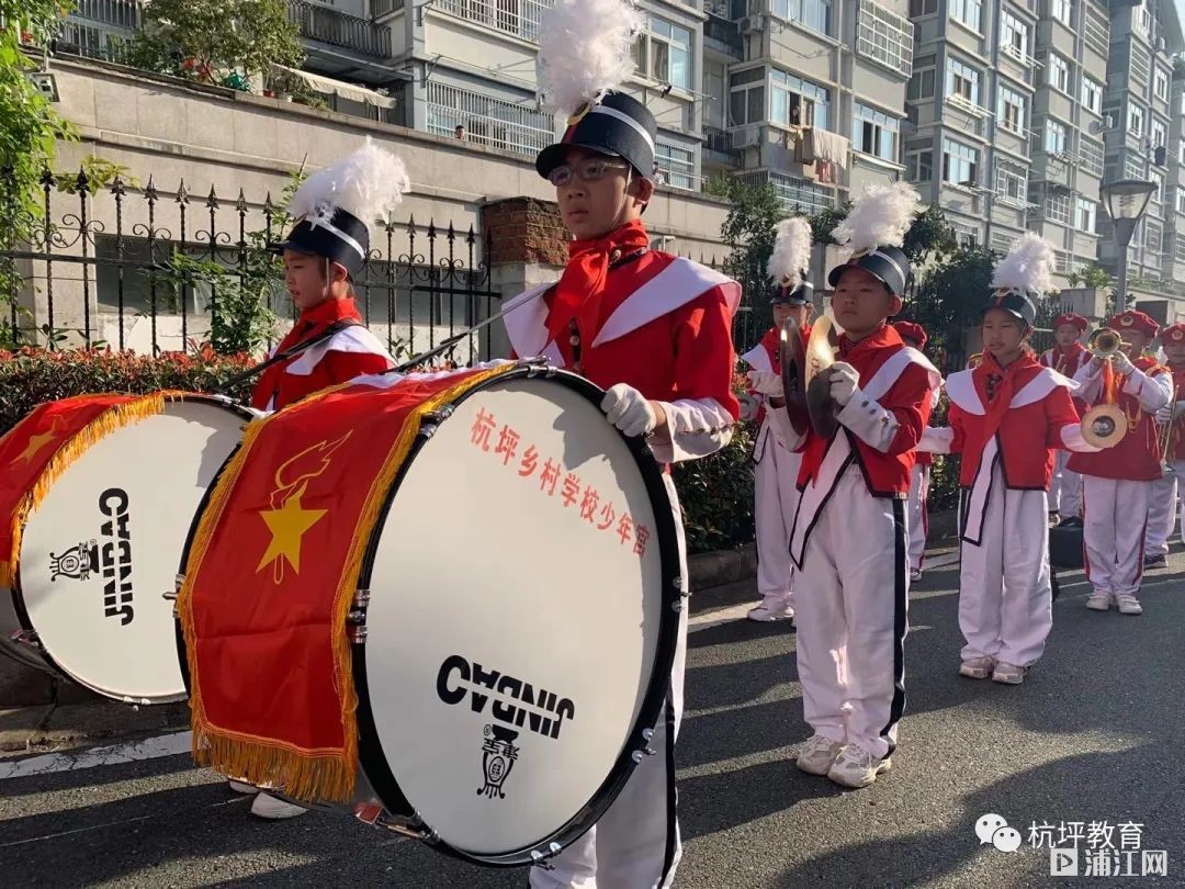 杭坪镇中心小学鼓号队队员们身着鲜艳的队服,个个精神抖擞,踏着坚定有力的步伐,在嘹亮的鼓号声中展现了新时代少先队员的风采。