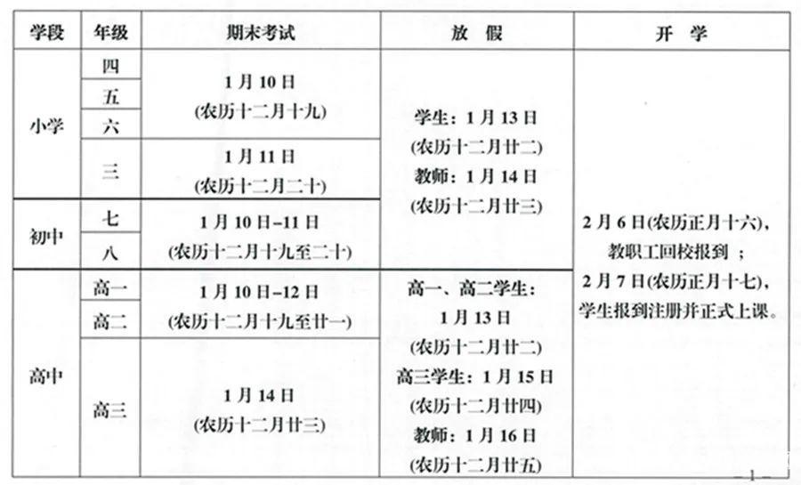 期末考试和放假时间安排