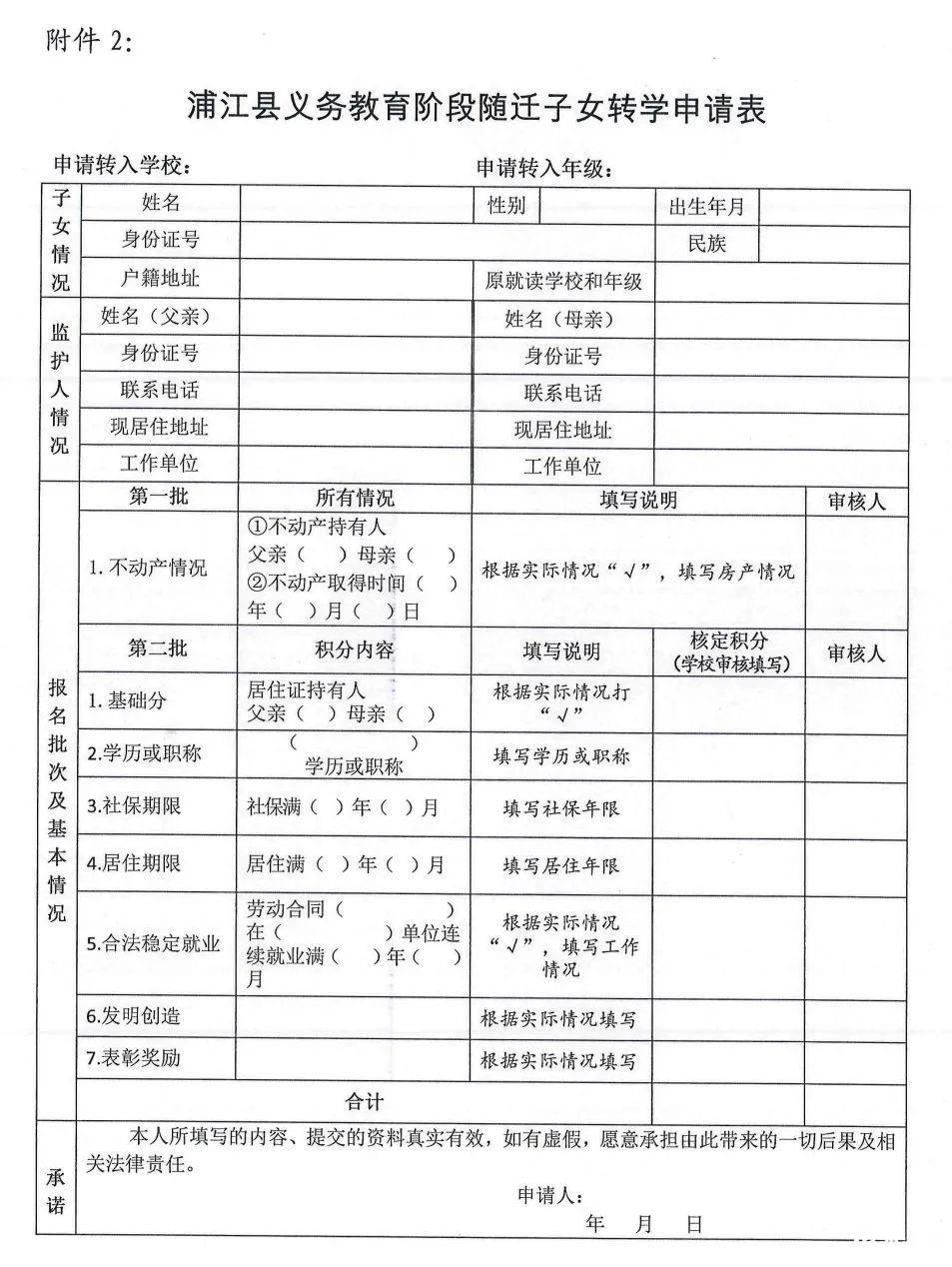 注:①目前已在浦江县公办小学和初中就读的随迁子女不列入本次转学范围。②2023年秋季入学的一年级、七年级新生不转学。