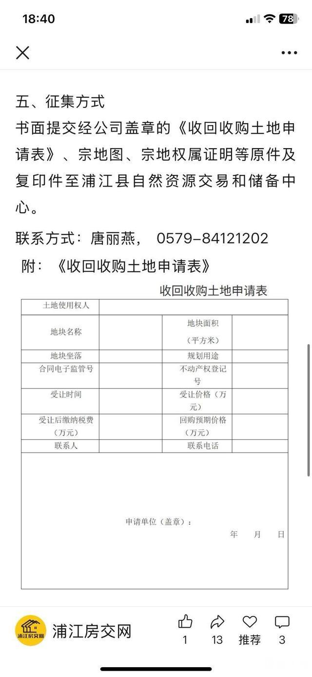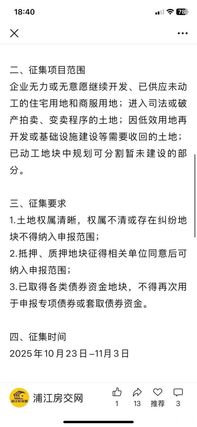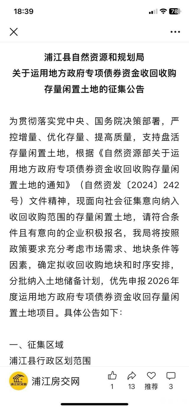 关于运用地方政府专项债券资金收回收购存量闲置土地的征集公告