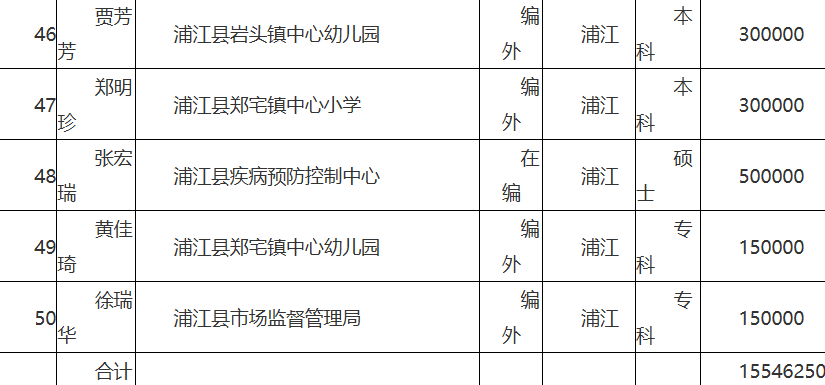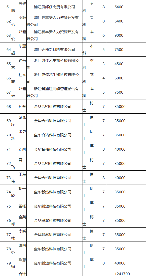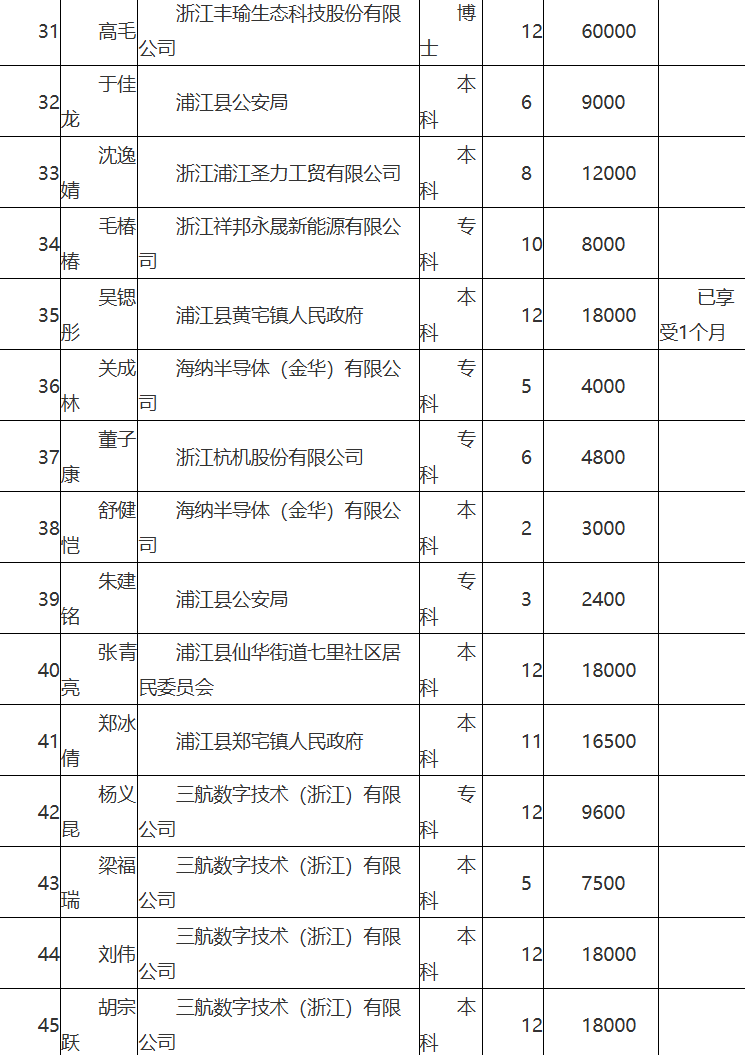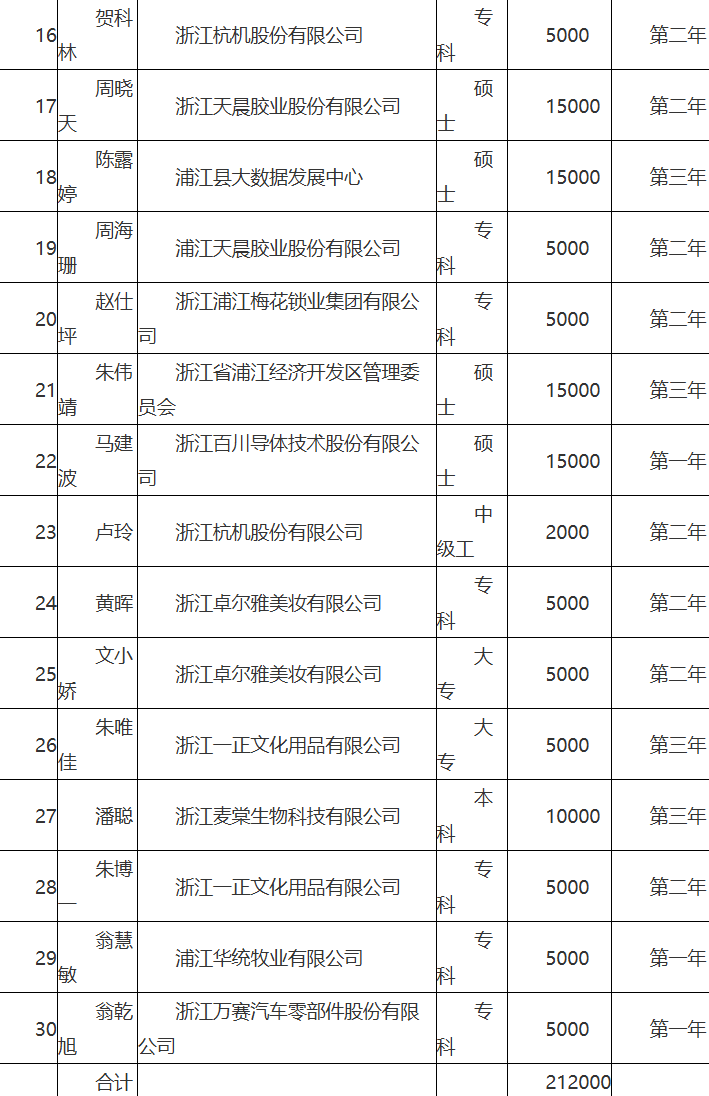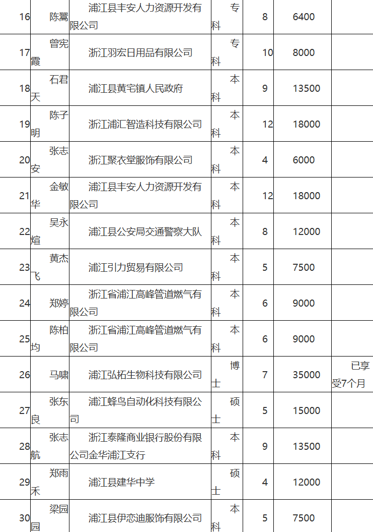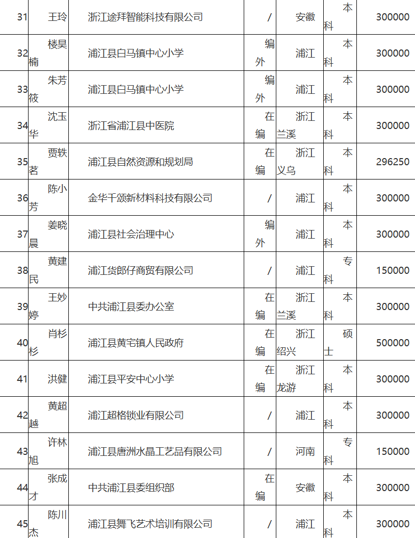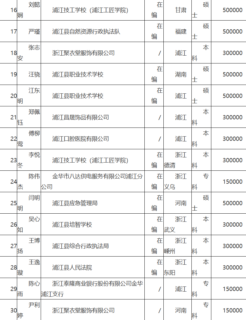 浦江县人才政策拟补助人员公示(2026-01-28)