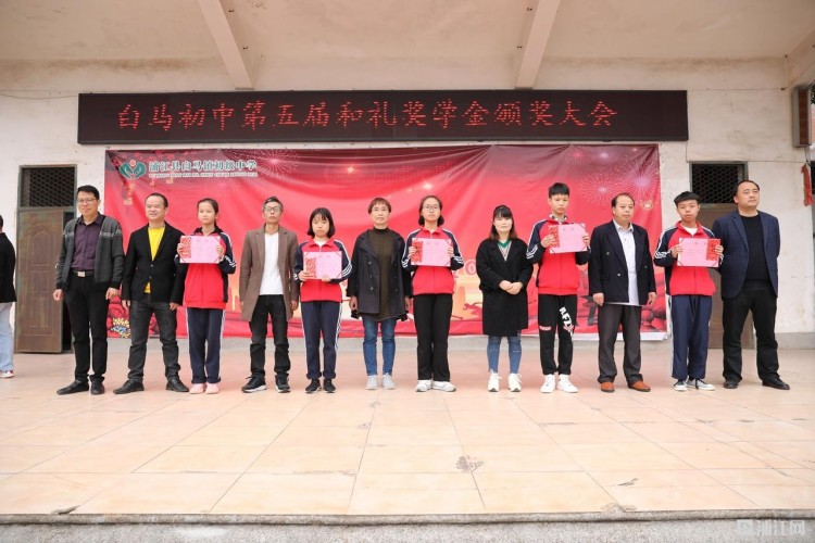 11月16日,白马镇初级中学举行了第五届“和礼” 奖学金颁发仪式。与以前不同的是,今年上台领奖的除了获奖学生,还有他们的家长。 学校此次共为108名各学段的优秀学生发放1.2万元的奖学金红包。领完奖品站回队伍中的获奖学生难掩兴奋,站在一旁的家长满脸欢喜。