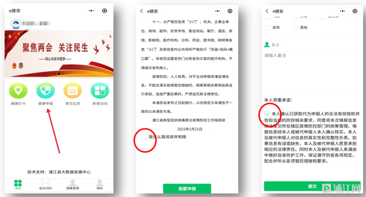 为进一步加强人员排摸,提前掌握来浦返浦人员的相关情况,强化我县冬春季疫情防控工作。同时,为简化流程,提升申报便捷度和精准度,即日起相关来浦返浦人员可通过微信扫一扫“e健安”二维码进行预申报。附件:来浦返浦人员健康申报操作流程