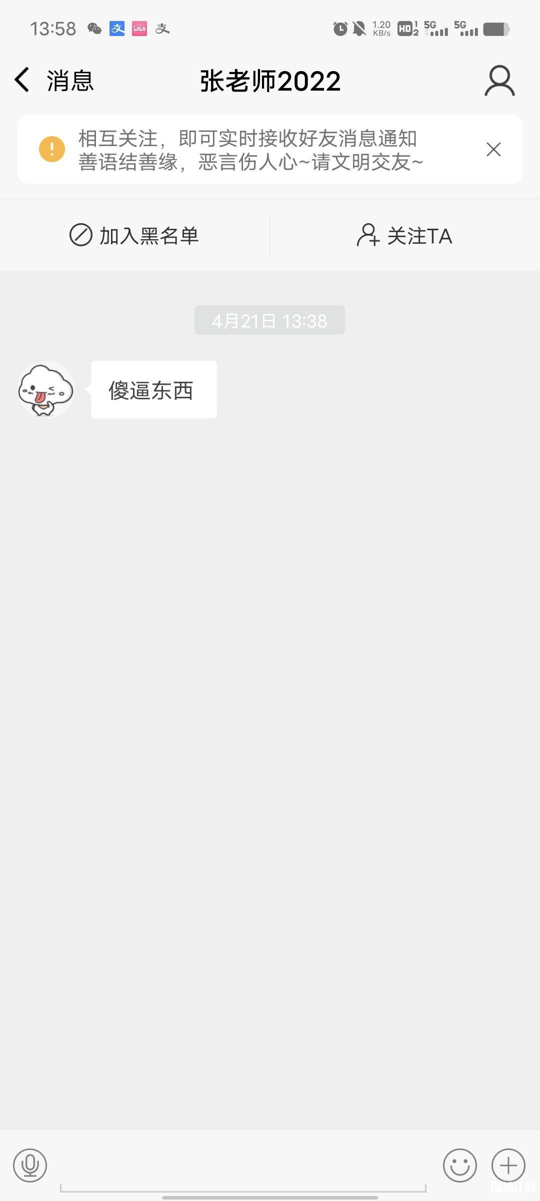 这个张老师,之前也骂过我,明明自己先私聊人家骂人,还拉黑人家,现在还发帖误导群友!难怪人家整个小号骂她![]()